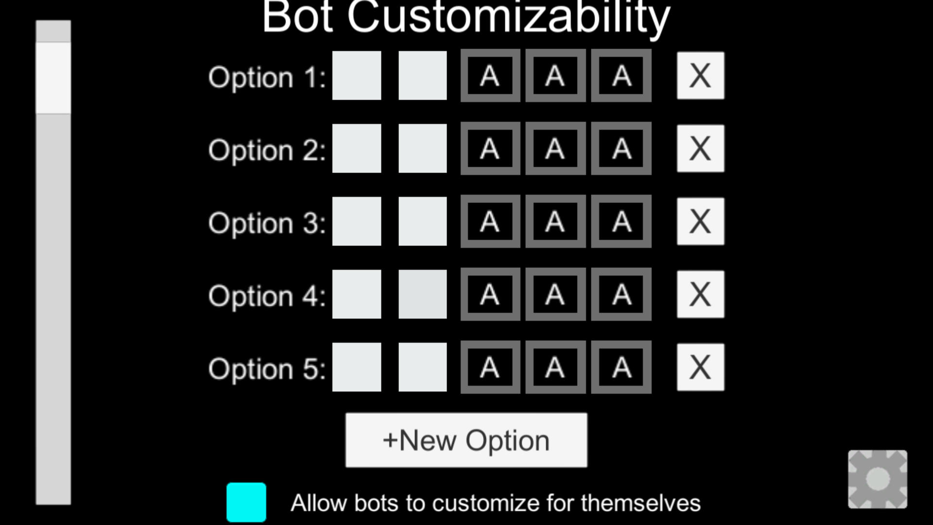 Secondly, you can customize bots. In this menu, you can add new entries, and specify which colors and what name a bot should choose. You also have the option for the bot to customize for himself. Disable this if customizing bots.