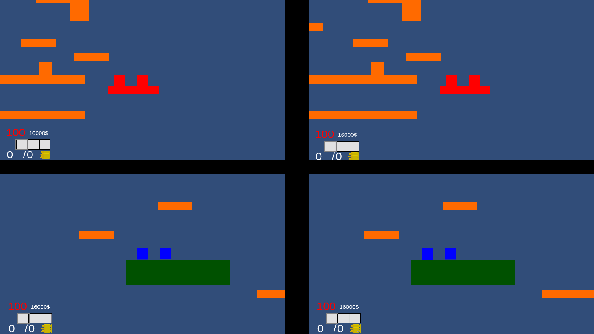 Gunbrawl is a local multiplayer 2d side scroller shooter made by AndrewIGD in which your objective is to eliminate everyone on the map. The game features a lot of weapons, 2 maps, and customizable gameplay.