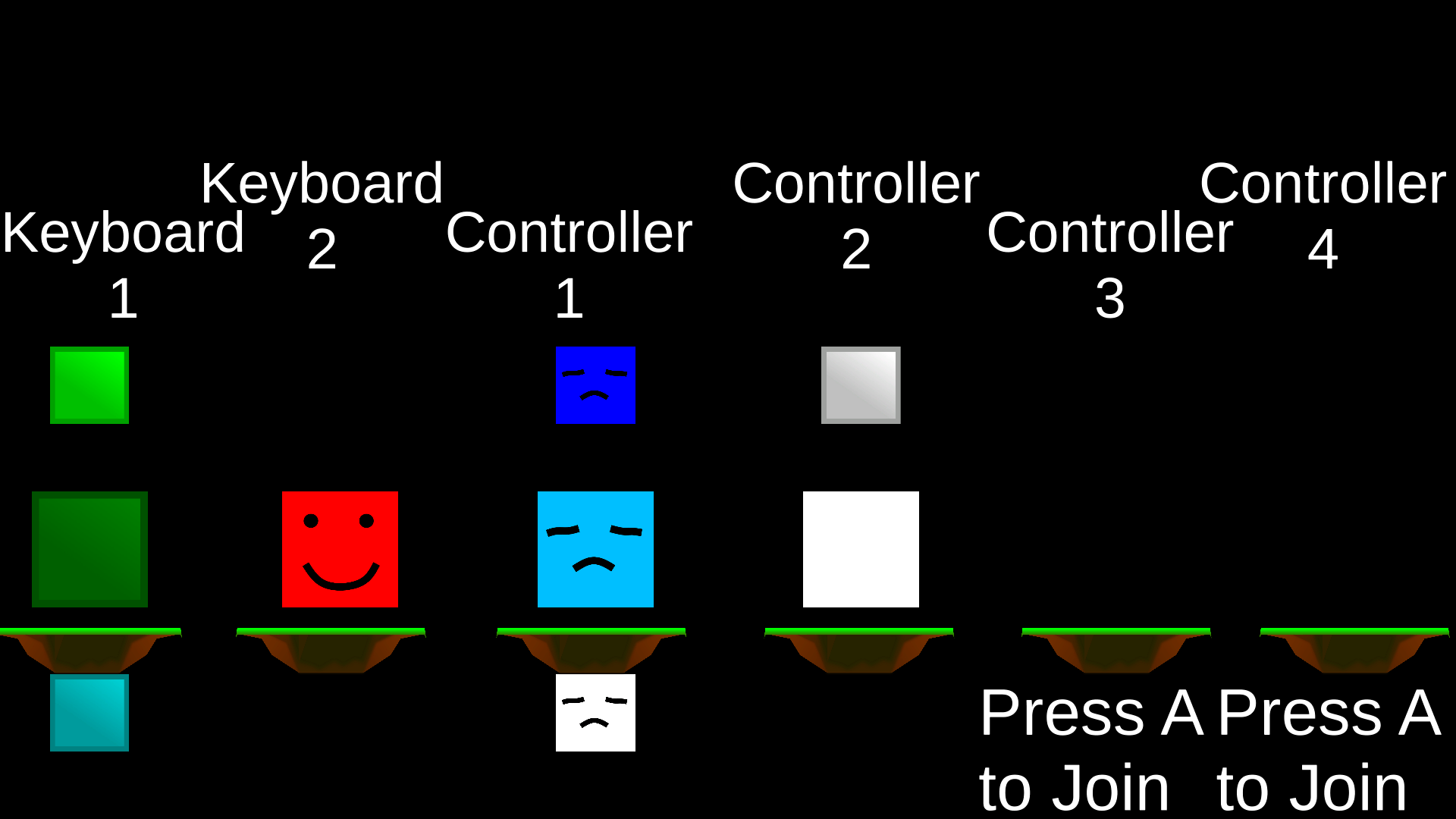 After everybody customizes their characters, someone using the keyboard may press Space to continue. After that the user should press 1 or 2 to select the map.